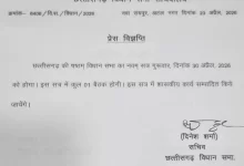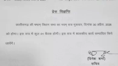 छत्तीसगढ़ विधानसभा का 30 अप्रैल को विशेष सत्र…