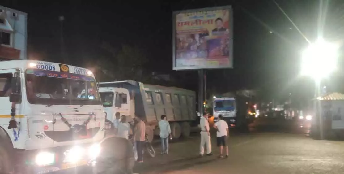 बेधड़क निकल रहे रेत से भरे हाइवा… मार्ग पर कई बार बड़े हादसे हो चुके…नाराज नगरवासियों ने रोककर प्रदर्शन किया