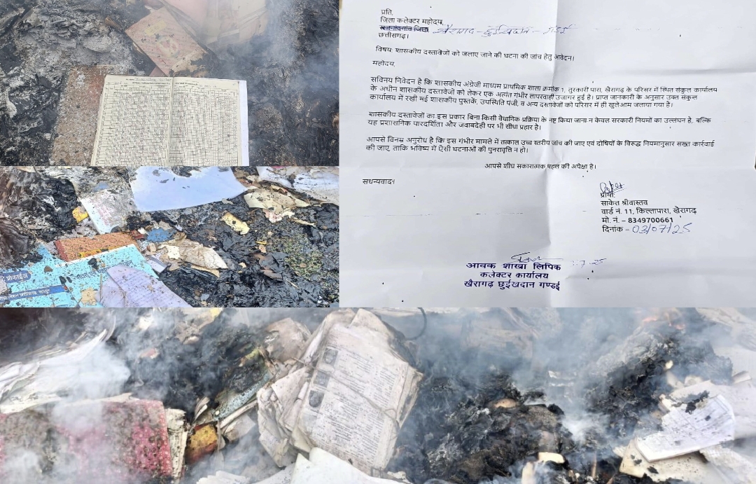 छत्तीसगढ़/खैरागढ़ : छत्तीसगढ़ के खैरागढ़ स्थित शासकीय अंग्रेजी माध्यम प्राथमिक शाला (क्रमांक-1) में बड़ी लापरवाही उजागर हुई है. स्कूल की किताबें, रजिस्टर समेत कई सरकारी दस्तावेज को बिना किसी प्रक्रिया के आगे के हवाले कर दिया गया. जिसके बाद यह सवाल उठ रहा है क्या कुछ छुपाने की साजिश के तहत यह दस्तावेज जला दिए गए।