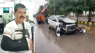 कार और क्रेन के बीच जोरदार भिड़ंत में जिला शिक्षा अधिकारी और पत्नी बाल-बाल बचें… DEO को हाथ में आया फ्रैक्चर…
