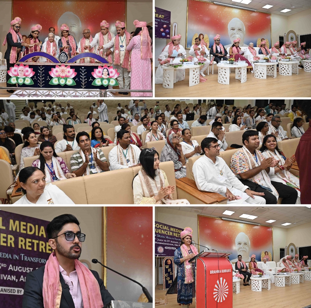 आबूरोड। ब्रह्माकुमारीज़ संस्थान के मनमोहिनीवन स्थित ग्लोेबल ऑडिटोरियम में चार दिवसीय सोशल मीडिया एन्फलुएंसर रिट्रीट का शुभारंभ किया गया। इसमें देशभर से 350 से अधिक एन्फलुएंसर भाग ले रहे हैं।