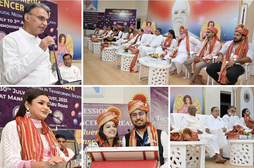 आबूरोड। ब्रह्माकुमारीज़ संस्थान के मनमोहिनीवन स्थित ग्लोेबल ऑडिटोरियम में चल रही सोशल मीडिया एन्फलुएंसर रिट्रीट का समापन हो गया। इसमें देशभर से 350 से अधिक एन्फलुएंसर ने भाग लिया। समाज को बदलने में डिजिटल मीडिया की भूमिका विषय पर आयोजित इस रिट्रीट के समापन सत्र में उप्र वनारस के महात्मा गांधी काशी विद्यापीठ के निदेशक डॉ. नागेंद्र कुमार सिंह ने कहा कि हमें चिंता की जगह, चिंतन करने की जरूरत है। जो भी सोशल मीडिया प्लेटफार्म चलाते हैं उनसे मेरा आग्रह है कि आप चिंतन करते रहिए। समाज के सामने ऐसा कंटेंट प्रस्तुत करते रहें कि वह सामाजिक मूल्यों को बढ़ावा दे। समाज को भारत की गौरवशाली संस्कृति के दर्शन कराए। हमें सोशल मीडिया के माध्यम से आध्यात्मिकता का प्रचार-प्रसार करने की जरूरत है।
