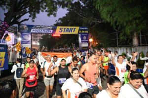 हरी झंडी दिखाते ही युवा से लेकर बुजुर्ग धावक जोश-जुनून और उत्साह के साथ दौड़ पड़े। कुछ धावक छीपाबेरी तक पहुंचते-पहुंचते हांफने लगे तो कुछ सात घूम तक पहुंचने के बाद थक गए। वहीं दौ सौ से अधिक प्रोफेशनल ऐसे धावक थे जो मैराथन में प्रस्थान स्थल से लेकर समापन स्थल ओम शांति भवन तक लगातार बढ़त बनाकर दौड़ते रहे।