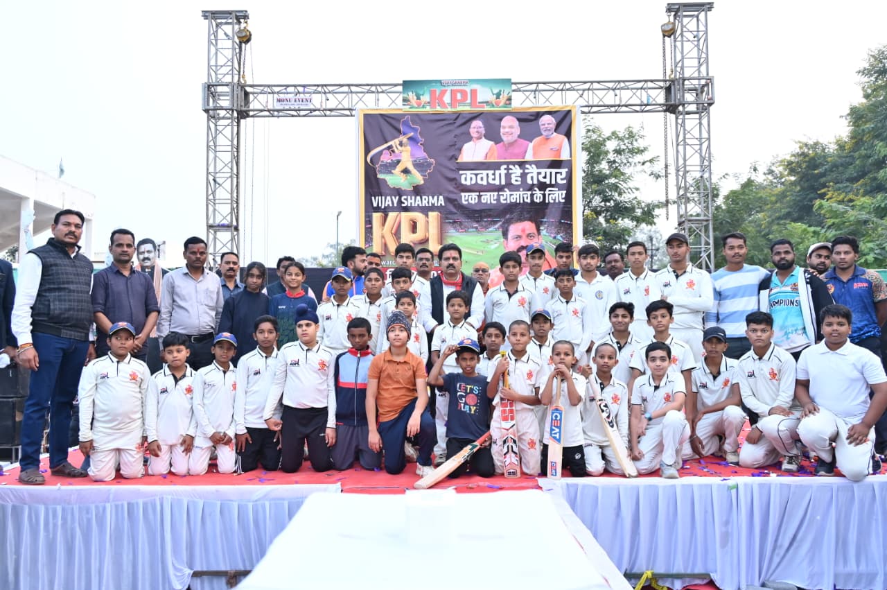 छत्तीसगढ़/कवर्धा, 26 नवम्बर 2025 : कवर्धा विधानसभा क्षेत्र में खेल प्रतिभाओं को प्रोत्साहित करने की दिशा में एक नई पहल करते हुए उपमुख्यमंत्री एवं कवर्धा विधायक श्री विजय शर्मा ने आज विधायक कार्यालय कवर्धा में “विजय शर्मा कवर्धा प्रीमियर लीग” के पोस्टर का विधिवत विमोचन किया। इस अवसर पर उन्होंने खिलाड़ियों का उत्साहवर्धन करते हुए स्वयं बल्ले से प्रतीकात्मक शॉट भी लगाया।