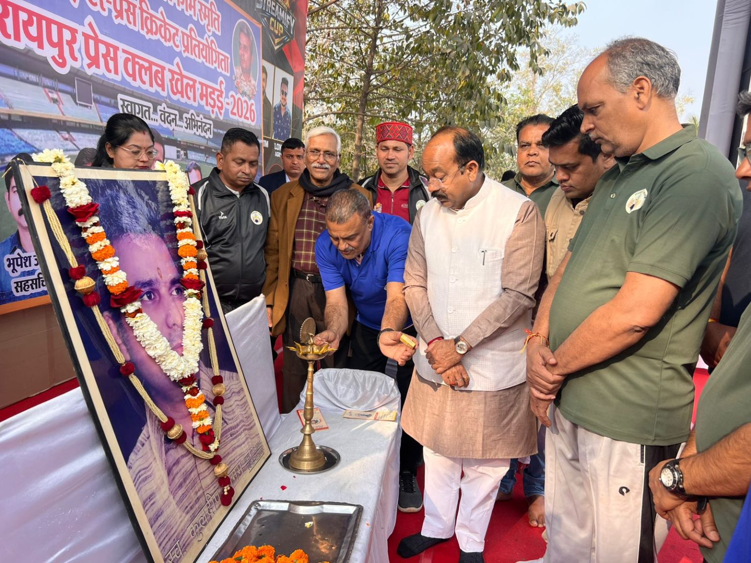 छत्तीसगढ़/रायपुर : छत्तीसगढ़ के उप मुख्यमंत्री अरुण साव ने आज रायपुर के नेताजी सुभाष स्टेडियम में रायपुर प्रेस क्लब द्वारा स्वर्गीय कुलदीप निगम की स्मृति में आयोजित खेल मड़ई के अंतर्गत इंटर प्रेस क्रिकेट प्रतियोगिता का भव्य उद्घाटन किया। रायपुर प्रेस क्लब के इस आयोजन का उद्देश्य पत्रकार साथियों को व्यस्त दिनचर्या से कुछ समय निकालकर खेलों से जोड़ना और स्वस्थ जीवनशैली को बढ़ावा देना है।