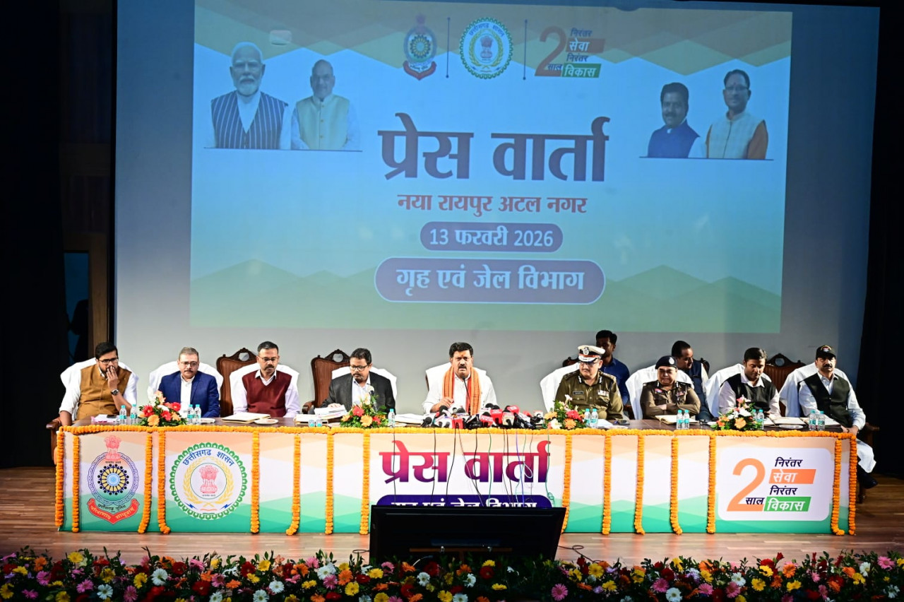 रायपुर, 13 फरवरी 2026 उपमुख्यमंत्री एवं गृह मंत्री विजय शर्मा ने आज गृह एवं जेल विभाग की उपलब्धियों के संबंध में नया रायपुर स्थित संवाद ऑडिटोरियम में पत्रकारों से चर्चा की। इस अवसर पर उन्होंने कहा कि सरकार बनने के साथ ही हम एक नई सोच को लेकर कार्य कर रहे हैं। राज्य की क्षमता में विस्तार के लिए नए आपराधिक कानूनों के कार्यान्वयन अन्तर्गत आइसीजेएस के तहत पांचों स्तंभों पुलिस, अभियोजन, फारेंसिक, जेल एवं न्यायालय को एकीकृत करने की प्रक्रिया में छत्तीसगढ़ राज्य अग्रणी है।