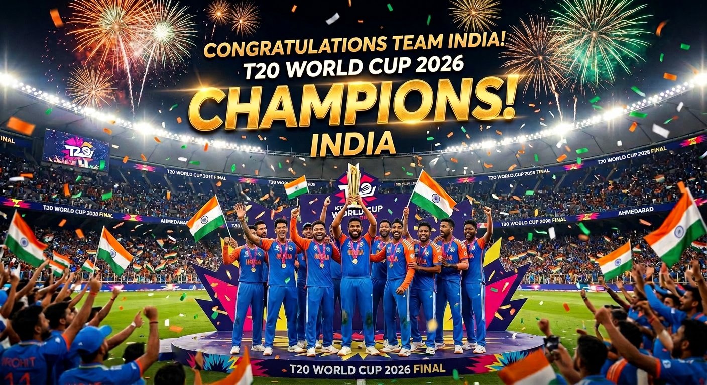 भारत ने न्यूजीलैंड को हराकर लगातार तीसरी बार ICC मेन्स टी20 विश्व कप 2026 का खिताब अपने नाम किया
