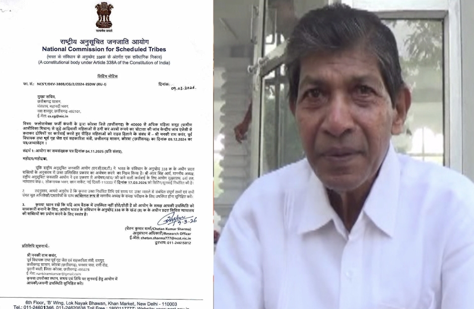 छत्तीसगढ़/रायपुर : छत्तीसगढ़ में भाजपा के वरिष्ठ आदिवासी नेता पूर्व गृहमंत्री ननकी राम कंवर की शिकायत पर राष्ट्रीय अनुसूचित जनजाति आयोग ने प्रदेश के मुख्य सचिव को व्यक्तिगत रूप से उपस्थित होने के निर्देश दिया है।